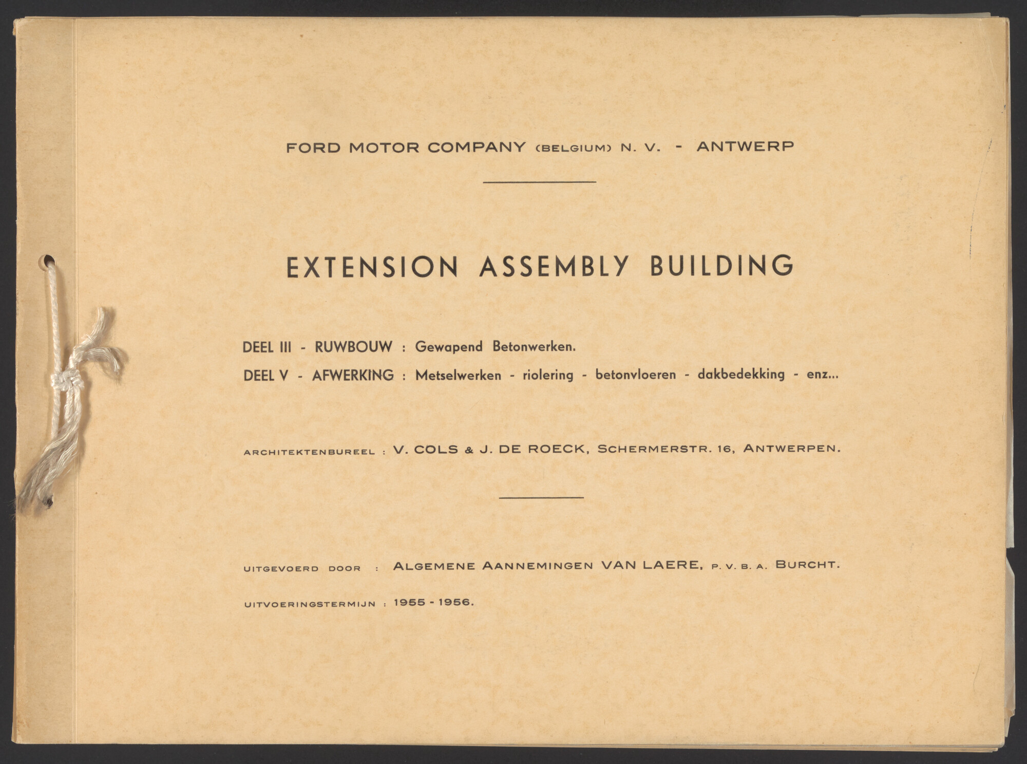 Meer info over archiefcontext Uit archief Beeldarchief van bouwbedrijf Van Laere Reproductie van collectiestuk Fotoalbum betreffende de aanleg van een gebouw van Ford Motor Company Belgium te Antwerpen Extra beeldinformatie Beeldcode obj-0004036_0189-VLA_img-001_B Copyright Licentie In Copyright Creditline Beeldarchief van bouwbedrijf Van Laere, collectie Vlaams Architectuurinstituut Vraag aan